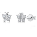 Sterling Silver Small Butterfly Stud Earrings Set With 2 Different Size Stones . Set With 2 and 3 mm Stones .Overall Diameter 7mm. 925 Silver- Hypoallergenic. The Finest AAA Cubic Zirconia Stones. Rhodium Finished for Tarnish Free Wear. Supplied With Gift Packaging.