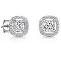 Sterling Silver Cubic Zirconia Earrings Cushion Cut With A Halo Surround. 8 mm Total Diameter With A 5mm Centre Stone .The Finest AAA Grade Cubic Zirconia Stones. 925 Silver - Hypoallergenic , Rhodium Finished For Tarnish Free Wear. Supplied With Gift Packaging.