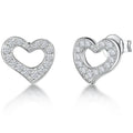 Sterling Silver Small Heart Offset Cubic Zirconia Earrings