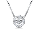 Sterling Silver Round Smiley Face Pendant Set With Cubic Zirconia Stones. Comes On A 16-18 Inch Silver Chain. 10 mm In Diameter Set with 1 mm Stones- The Finest AAA Cubic Zirconia Stones. 925 Sterling Silver Rhodium Finished -Tarnish Free. Supplied with Gift Packaging