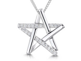 Sterling Silver Star Five Pointed Pendant Half Pave Finished. 17mm O.D. Set With The Finest AAA Cubic Zirconia Stones. Rhodium Finished For Tarnish Free Wear. Supplied on a 16-18 Inch Adjustable Silver Chain. Comes With Gift Packaging