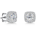 Sterling Silver Stud Earring With 4mm Princess Cut Cubic Zirconia & 1mm Pave Surround. The Finest AAA Grade Cubic Zirconia Stones. 925 Silver - Hypoallergenic , Rhodium Finished For Tarnish Free Wear. Supplied With Gift Packaging