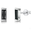Sterling Silver Rectangle Earrings With Black Cubic Zirconia Centre. 10mm Overall Diameter. 925 Silver- Hypoallergenic. Rhodium Finished For Tarnish Free Wear. Supplied With Gift Packaging.