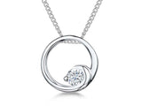Sterling Silver Circle Necklace With A Cubic Zirconia Set Twist Feature Overall Diameter. 12mm. The Finest AAA Grade Stones .925 Sterling Silver- Hypoallergenic. On a 16-18 Inch Adjustable Chain. Rhodium Finished  For Tarnish Free Wear. Comes With Gift Packaging