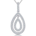 Sterling Silver Teardrop Within A Teardrop Set With 1.25mm Pave Cubic Zirconias. 23mm in Length.16-18inch Adjustable Chain.The Finest AAA Grade Cubic Zirconia Stones. 925 Silver - Hypoallergenic , Rhodium Finished For Tarnish Free Wear. Supplied With Gift Packaging
