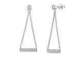 .Sterling Silver Triangle Chain Drop Earrings With 1.75mm Pave Bar. 3mm CZ Stud Bale. Overall Diameter 15x41mm .The Finest AAA Grade Cubic Zirconia Stones. 925 Silver - Hypoallergenic , Rhodium Finished For Tarnish Free Wear. Supplied With Gift Packaging.