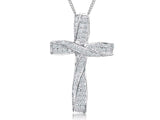 Sterling Silver Pendant - Featuring A Pave Set Twisted Cross With White Or Black And White Cubic Zirconia Stones. Select Version l.1.5mm Stones,  30 mm Long/ 15 mm Wide. The Finest AAA Cubic Zirconia Stones. 925 Sterling Silver-. Rhodium Finished For Tarnish Free Wear. Available in 18ct Yellow Gold Vermeil. Comes on a 16-18 Inch Silver Curb Chain. Supplied with Gift Packaging.