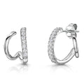 Sterling Silver Twist Huggie Stud Earrings With Half Pave 1.75mm Cubic Zirconias. 14mm Overall Diameter.The Finest AAA Grade Cubic Zirconia Stones. 925 Silver - Hypoallergenic , Rhodium Finished For Tarnish Free Wear. Supplied With Gift Packaging.