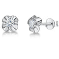 Sterling Silver And White Zirconia Flower Earrings With A 4 mm 0.25 Carat Zirconia Centre And Polished Surround. Overall Diameter 8 mm. Rhodium Finished Tarnish Free. Comes With Gift Packaging