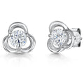 Sterling Silver Three Flower White Zirconia Stud Earrings