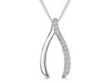 Sterling Silver Wishbone Pendant With Half Pave 1.25, 1.5mm Cubic Zirconia's. 11x20mm Overall Diameter. Comes With A 16-18inch Adjustable Silver Curb Chain.925 Silver - Hypoallergenic , Rhodium Finished For Tarnish Free Wear. The Finest AAA Grade Cubic Zirconia Stones. Supplied With Gift Packaging.