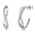 Twisted Sterling Silver & Cubic Zirconia Hoop Earrings on Pin & Butterfly. 1mm Cubic Zirconias. 5x24mm Overall Diameter.  The Finest AAA Grade Cubic Zirconia Stones. 925 Silver - Hypoallergenic , Rhodium Finished For Tarnish Free Wear. Supplied With Gift Packaging