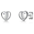 9-Carat-White-Gold Bubbly-Heart Stud Earrings, Ornamented With A Diamond In Each Pair, Having An Overall Diameter Of 7x7mm.