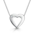 This Delicate 9-Carat White Gold Open Heart Pendant, Adorned With A Single Elegant Diamond, Is Presented On A 16-Inch White Gold Box Chain. Dimensions Of 8x8mm Complete The Design.