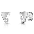 Finely Crafted From 9 Carat Textured White Gold, These V-Shaped Studs Have A Beautiful Juxtaposition Of A Half Textured, And Half Polished Finish, With Dazzling Diamonds Set In Its Center. An Elegant 8x7mm In Diameter, These Are An Exquisite Commodity.
