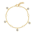 Yellow Gold Clover Charm Bracelet with 5 Quarter Carat Cubic Zirconia Stones. Adjustable Fastening. Total 2.0  Carat Weight. 18ct Yellow Gold Vermeil- Hypoallergenic. The Finest AAA Cubic Zirconia Stones.  Tarnish- Free. Supplied With Gift Packaging.