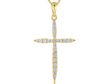 Yellow Gold Cross Encrusted With Brilliant Cut Round 1.5mm White Zirconia Stones.  19 X 34mm Overall Diameter. On a 16-18 Inch Adjustable Chain. The Finest AAA Cubic Zirconia Stones. 18ct Gold Vermeil On Sterling Silver. Tarnish Free. Supplied with Gift Packaging.