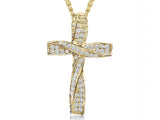Yellow Gold Cross Pendant - Featuring A Pave Set Twisted Cross With White Cubic Zirconia Stones. 1.5mm Stones,  30 mm Long/ 15mm Wide. The Finest AAA Cubic Zirconia Stones. 18ct Yellow Gold Vermeil For Tarnish Free Wear. Comes on a 16-18 Inch Gold Curb Chain. Supplied with Gift Packaging.