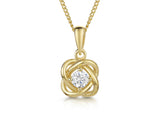 Yellow Gold Woven Knot Setting Pendant With 4mm Cubic Zirconia. 10x16mm Overall Diameter .16-18inch Adjustable Chain. 18ct Gold Vermeil On Sterling Silver. The Finest AAA Cubic Zirconia's.  Hypoallergenic-Tarnish Free. Supplied On A 16-18inch Adjustable Chain. Supplied With Gift Packaging.